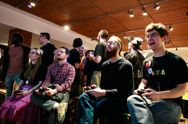 The Games Expo that follows the Game Studio presentations is a rare and vibrant celebration of electronic arts in Vermont. From arcade cabinets to themed booths, the Expo provides students, faculty, recruiters, friends and family to celebrate student creativity.